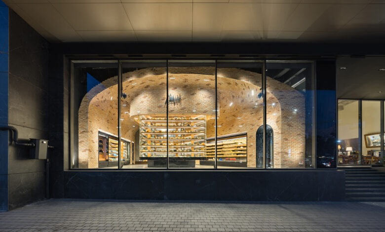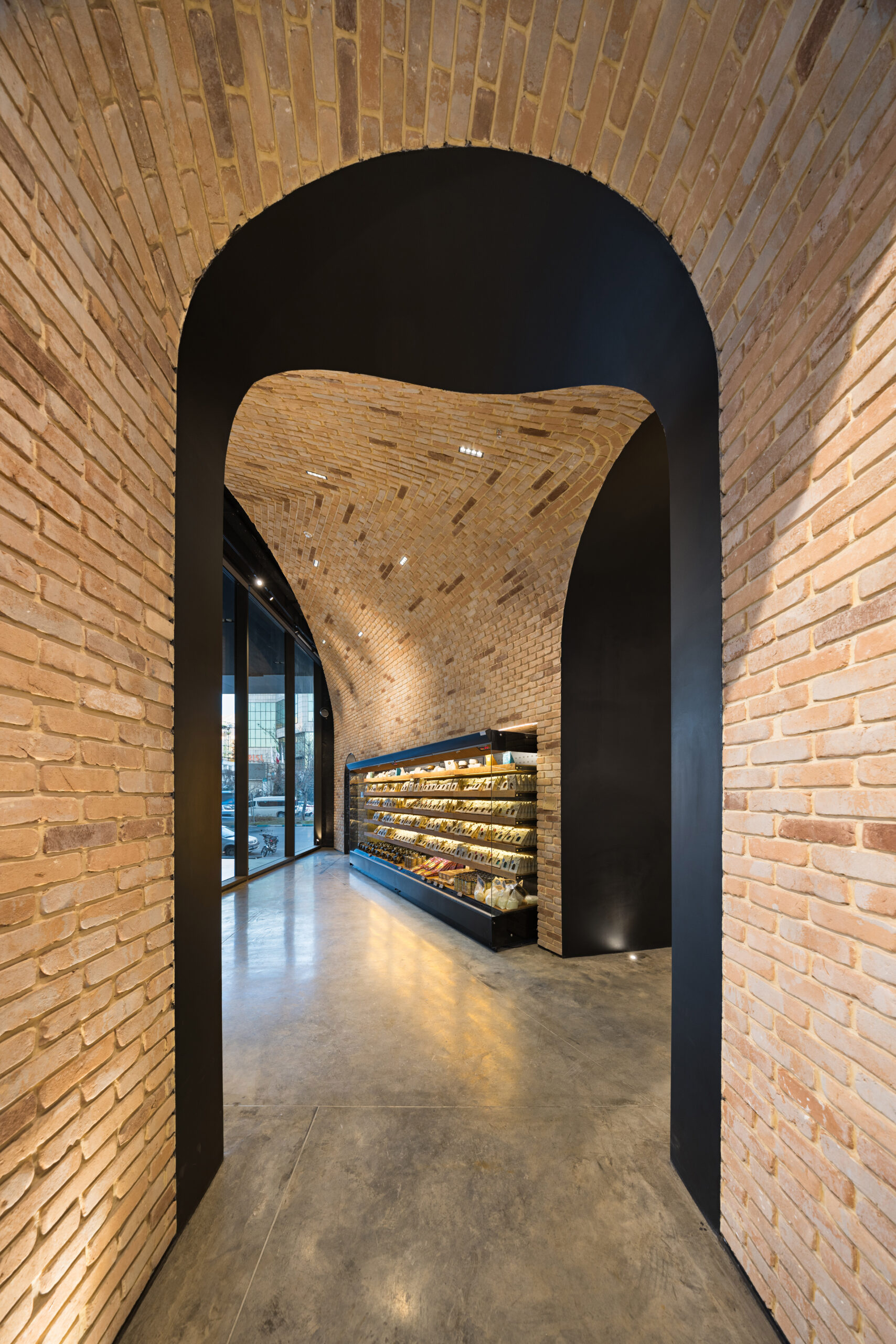 در طراحی فروشگاه، آجر به‌عنوان عنصر شاخص، با بافتی گرم و زنده، حس اصالت را منتقل می‌کند و طاق‌های بلند و قوسی‌شکل یادآور فضاهای نگهداری سنتی پنیر در اروپا و خاورمیانه‌اند.